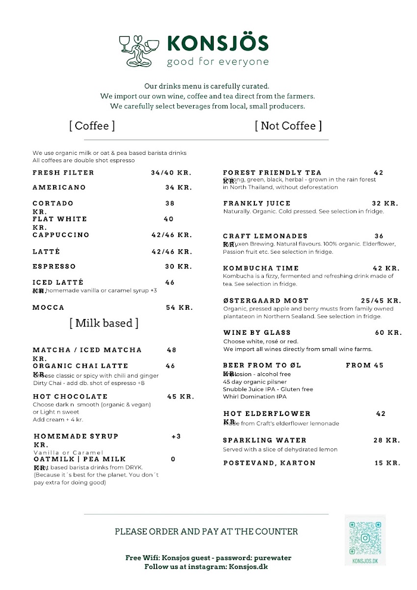 Konsjös Copenhagen offers a delightful range of beverages and meals, ideal for those seeking a cozy yet satisfying dining experience. The menu features a blend of classic and vegan options, showcasing the best of local flavors with an international touch.